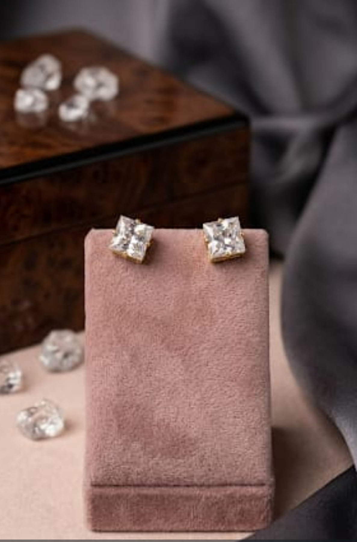 Brinco pequeno quadrado ponto de luz com 3 milésimo de ouro