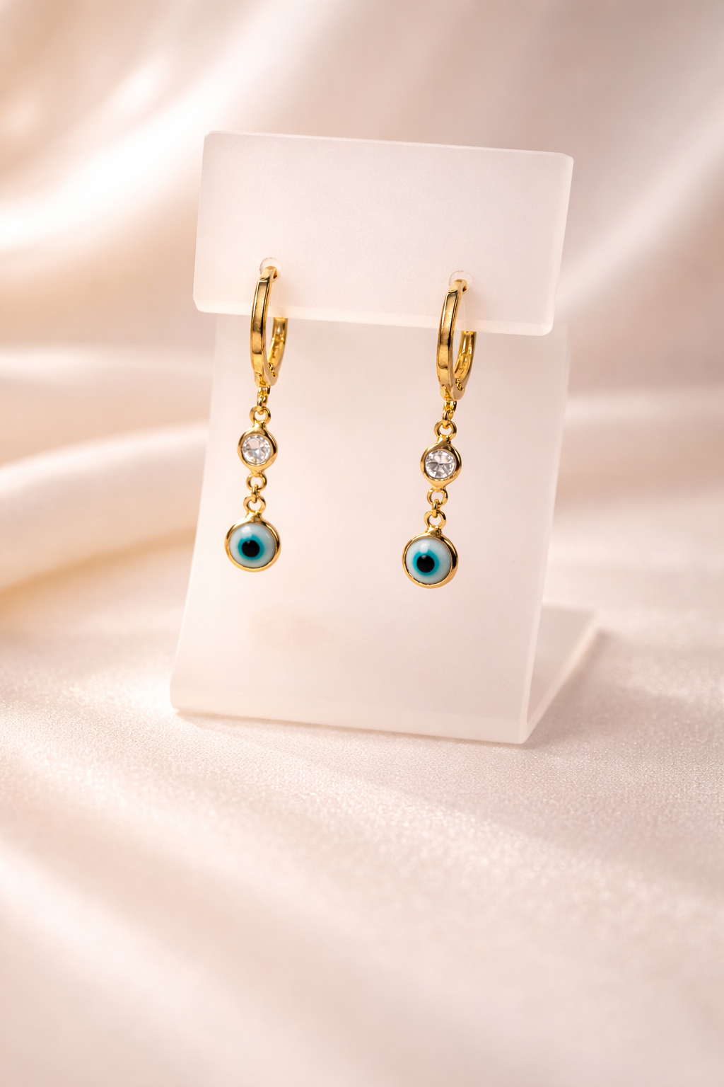 Brinco médio olho grego ponto de luz com 3 milésimo de ouro