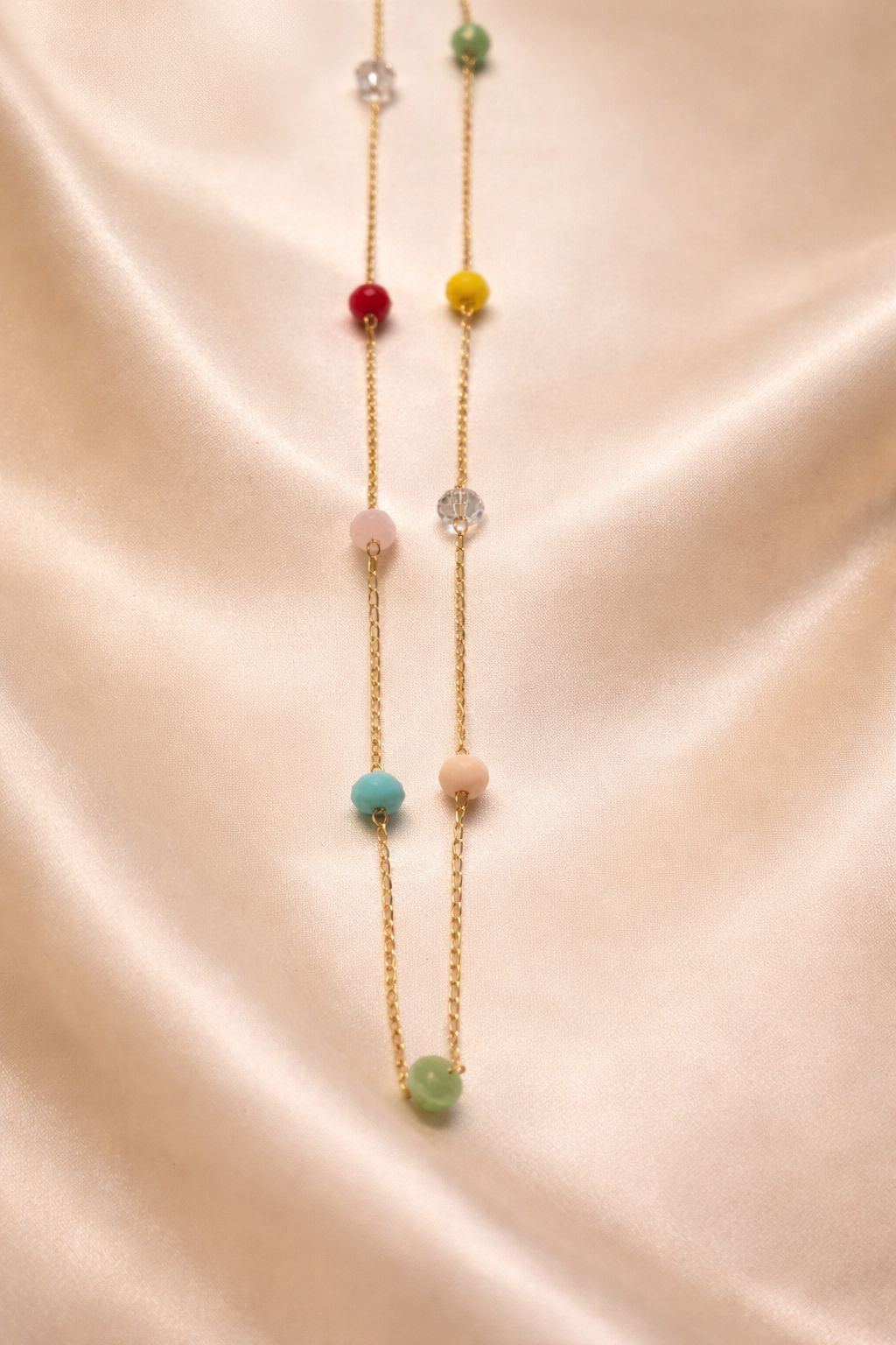 Colar feminino miçanga 44 cm com 7 milésimo de ouro