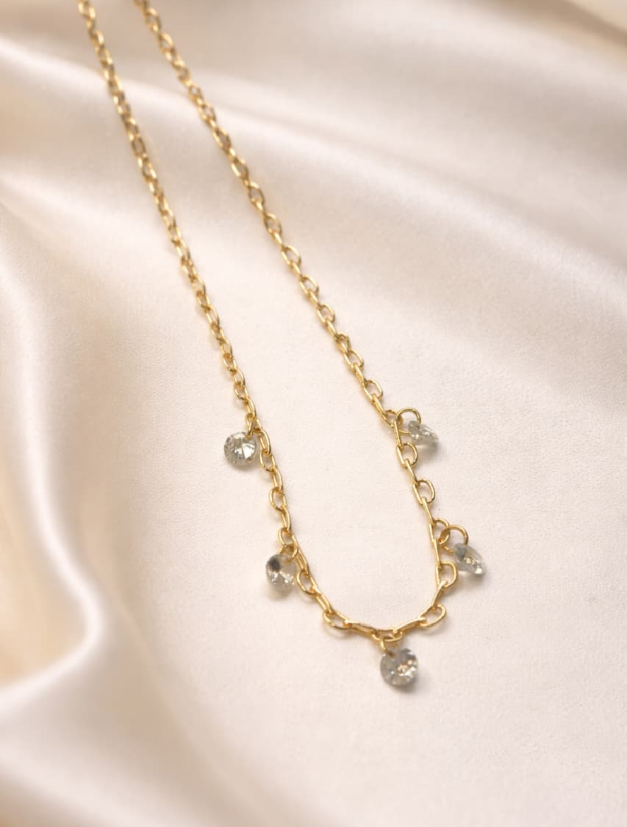 Colar feminino com zircônia 38 cm + extensor 5 cm com 7 milésimo de ouro