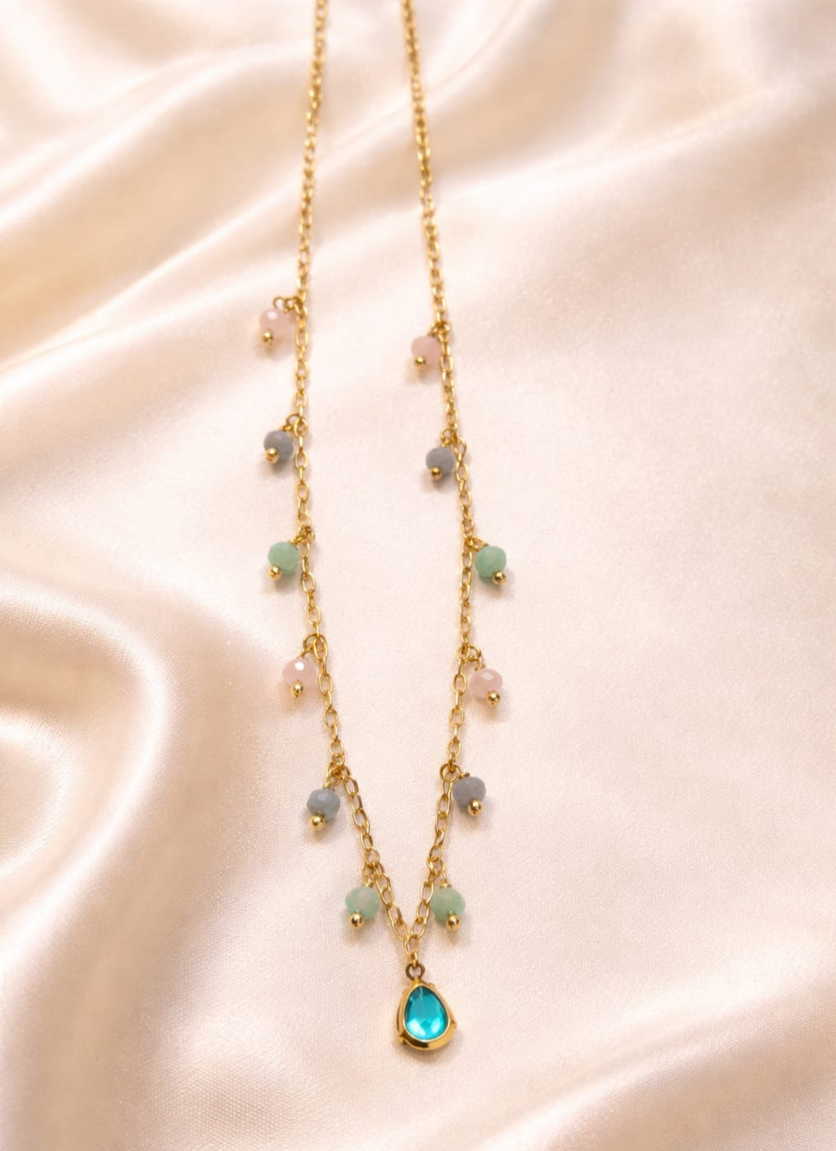 Colar feminino com miçanga e zircônia 34 cm extensor 4 cm com 7 milésimo de ouro
