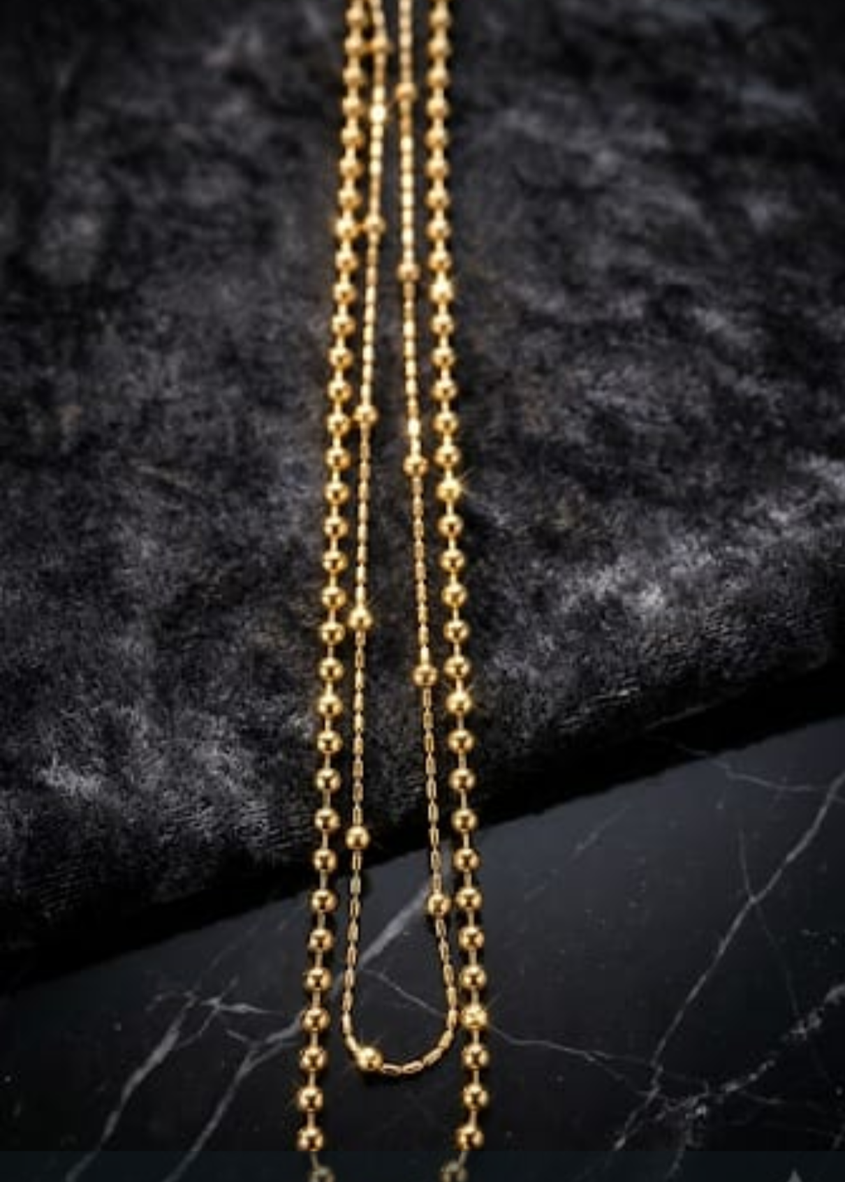 Colar feminino Duplo bolinha 40 cm extensor 7 cm com 7 milésimo de ouro