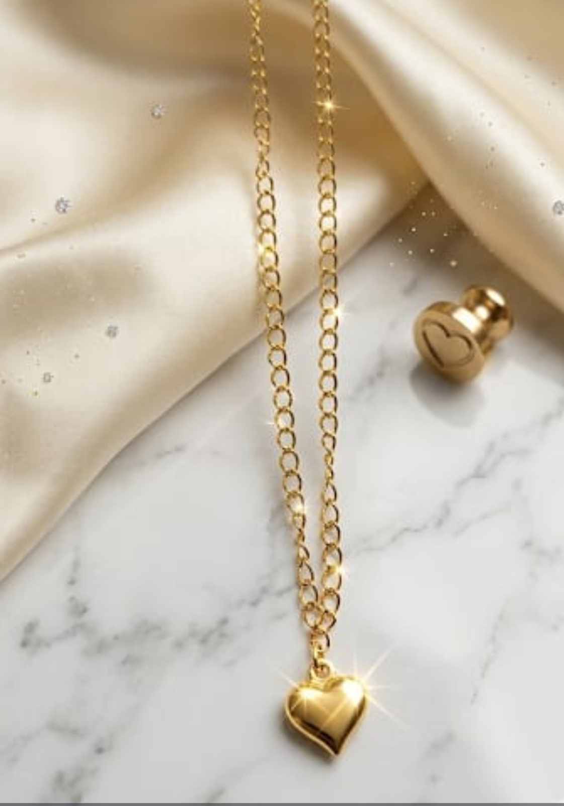 Tornozeleira feminina com pingente coração 24 cm extensor 3 cm com 7 milésimo de ouro